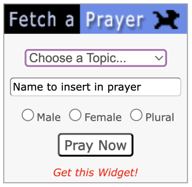 You can also use: FETCH A PRAYER. A little app we created some time ago to generate a ready-to-use prayer. You chose the topic at the top, and a prayer opens up and is ready to go!